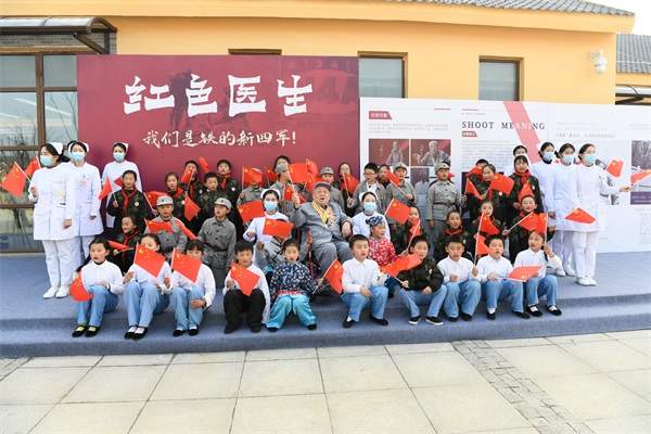 来自全国各地的新四军卫生工作老前辈及其亲属、新四军后代、退役老兵、参加援鄂的抗疫英雄代表、医护人员和学生代表,以及北京、南京、淮安、盱眙等地的有关单位领导汇聚黄花塘,参加纪录片《红色医生》的首播庆典活动。