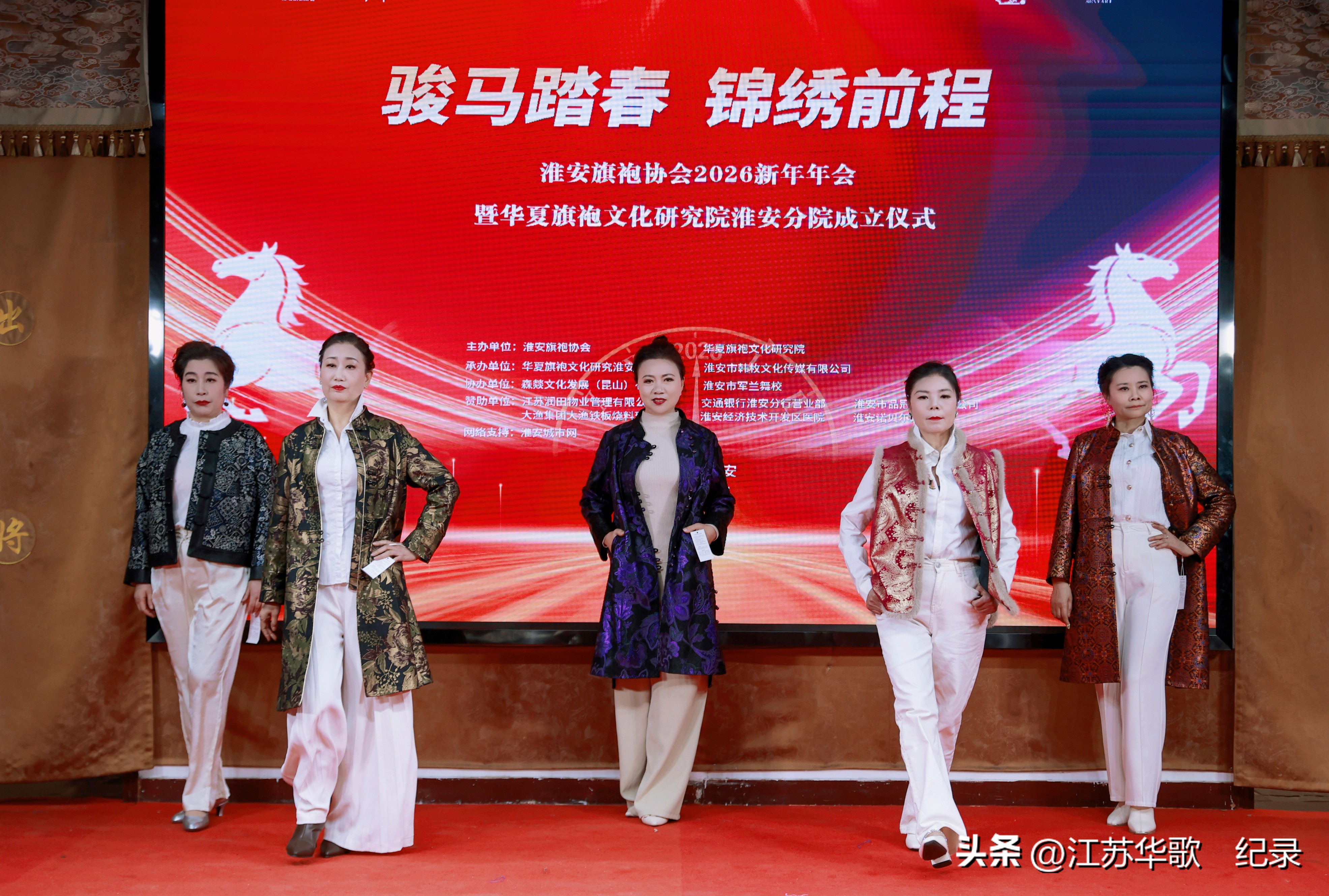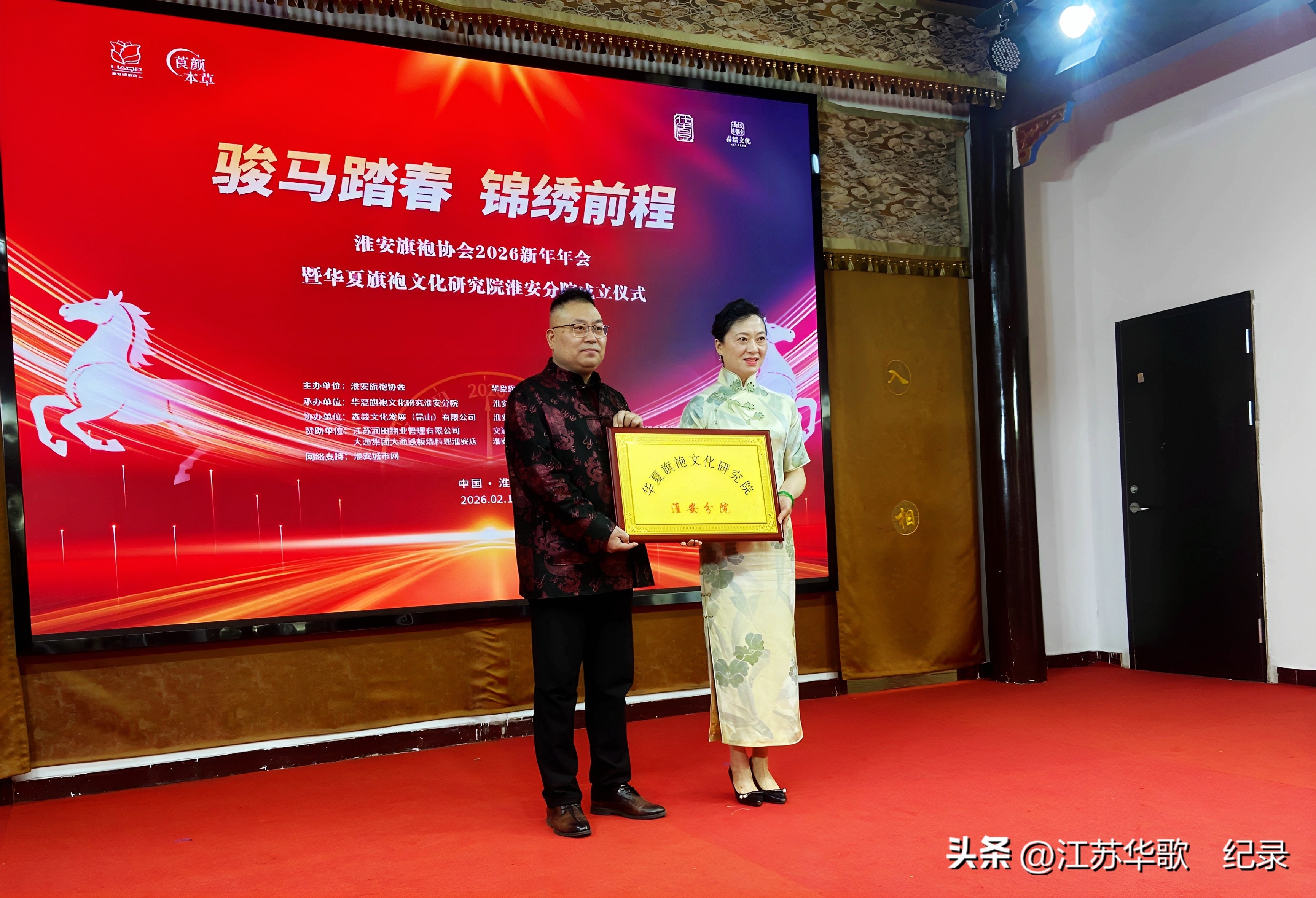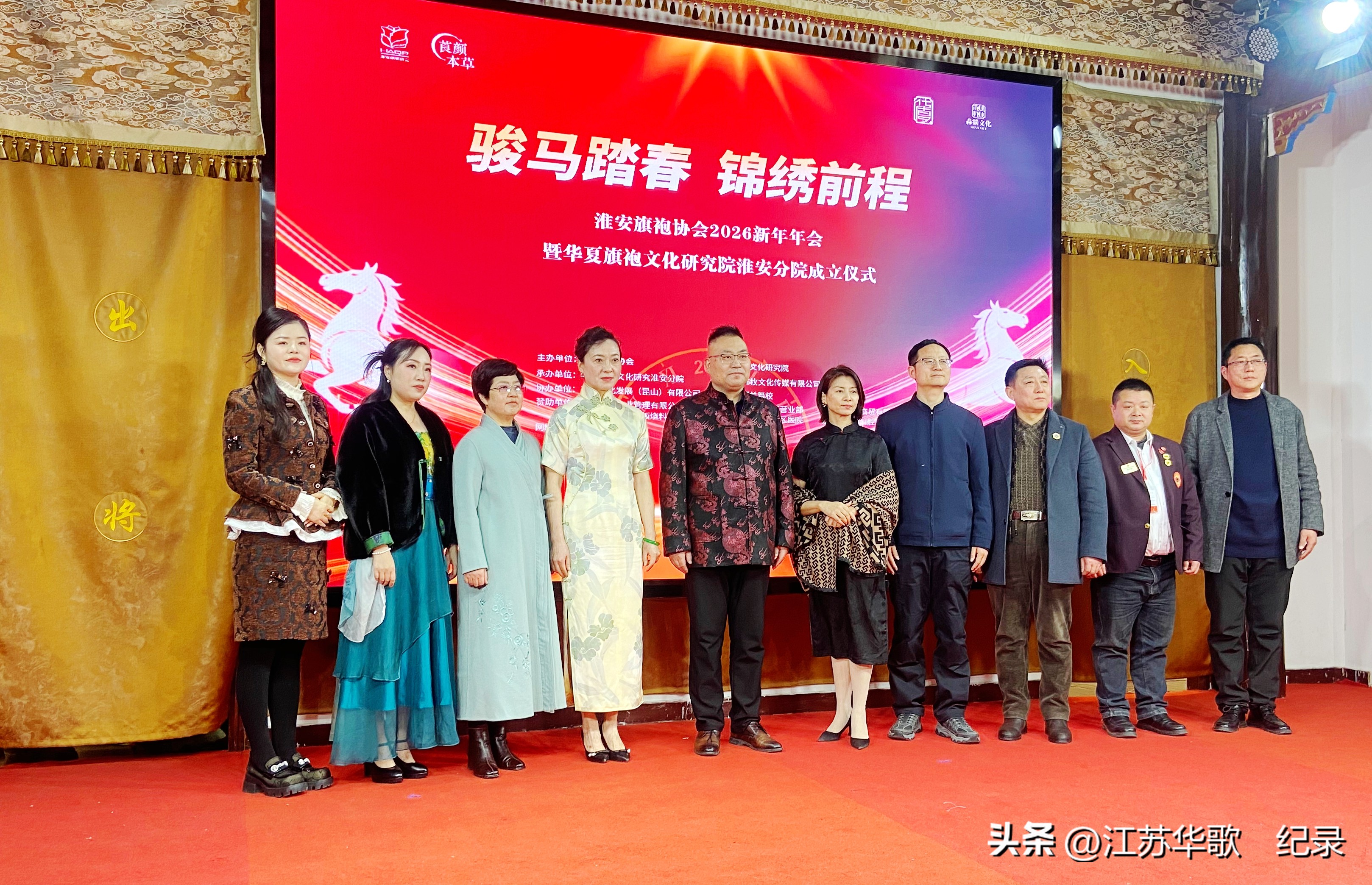 淮安旗袍协会2026新年年会暨华夏旗袍文化研究院淮安分院成立仪式在此隆重举行。一众身着锦绣旗袍的佳人,与各界宾朋一道,热热闹闹地欢迎农历马年。为水韵淮安增添了一抹浓郁隽永的东方美学色彩。
