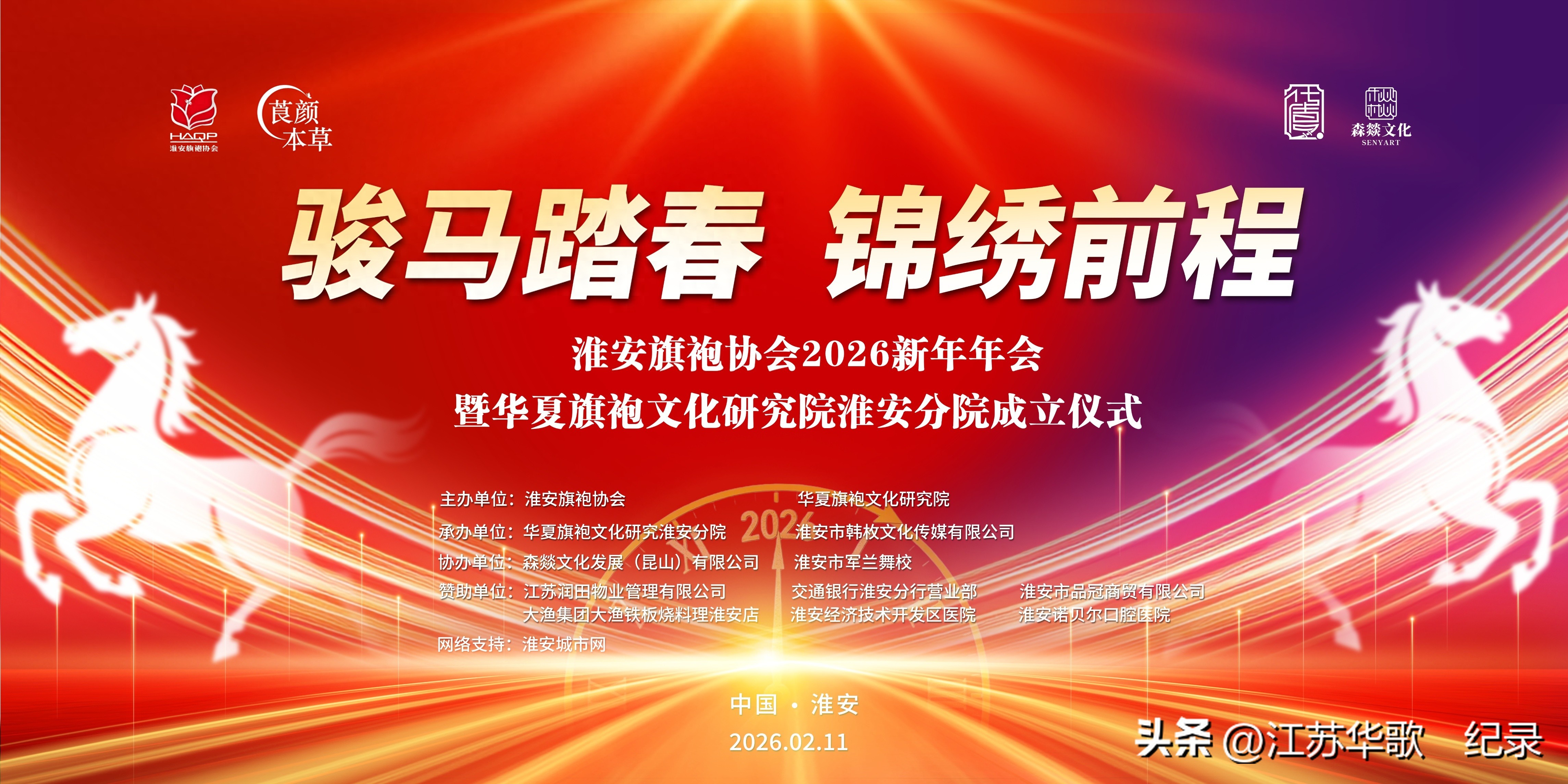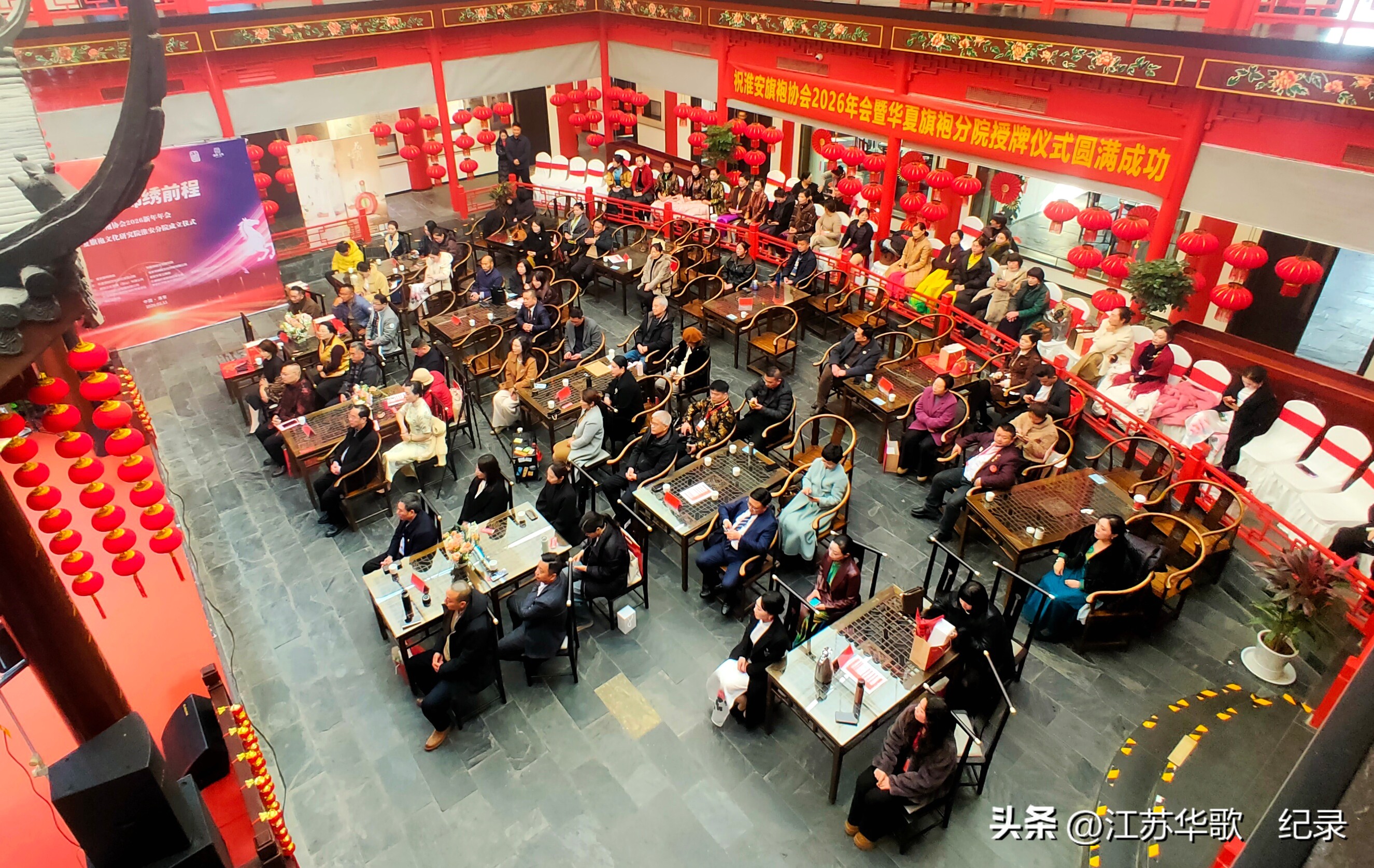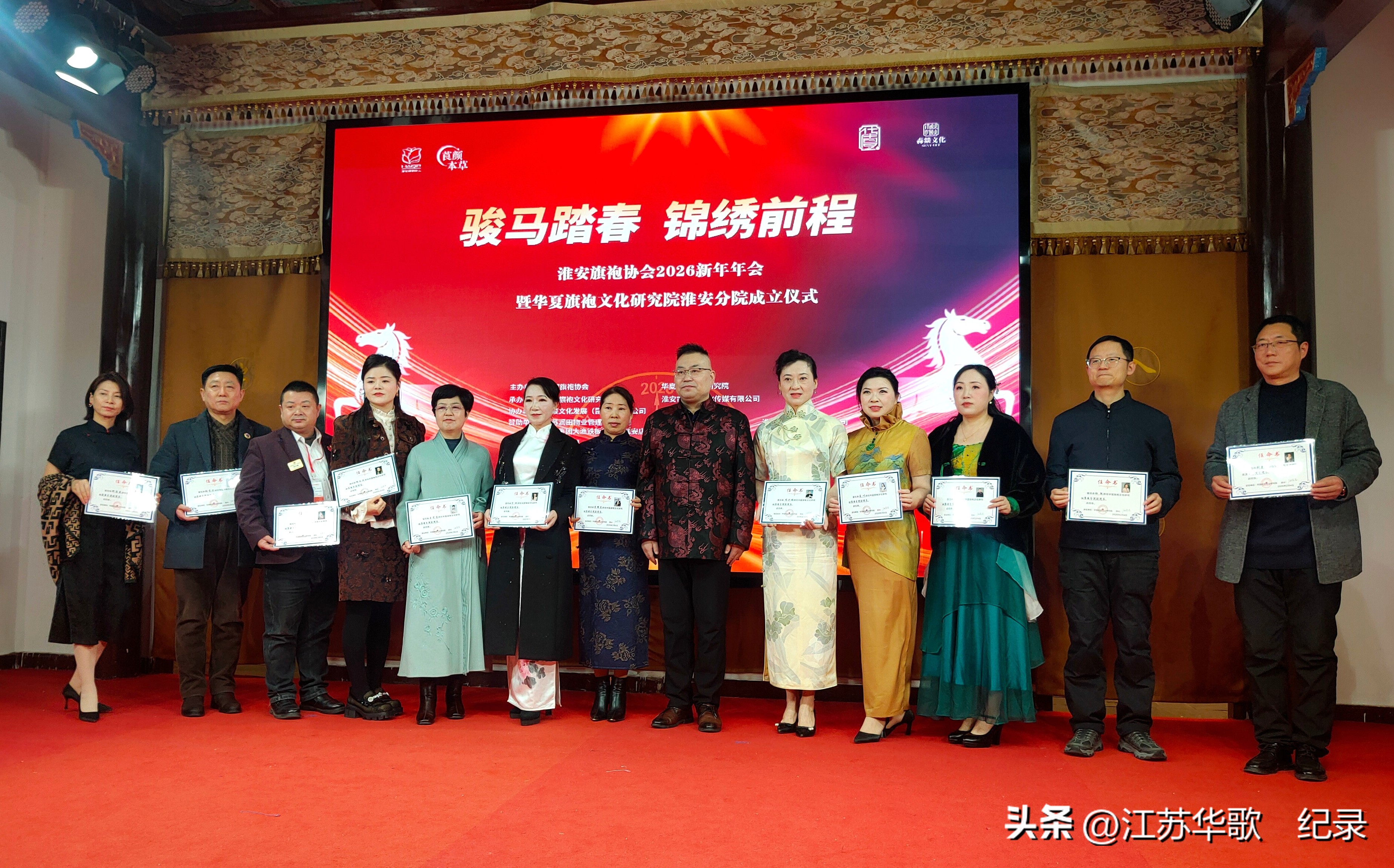 淮安旗袍协会2026新年年会暨华夏旗袍文化研究院淮安分院成立仪式在此隆重举行。一众身着锦绣旗袍的佳人,与各界宾朋一道,热热闹闹地欢迎农历马年。为水韵淮安增添了一抹浓郁隽永的东方美学色彩。